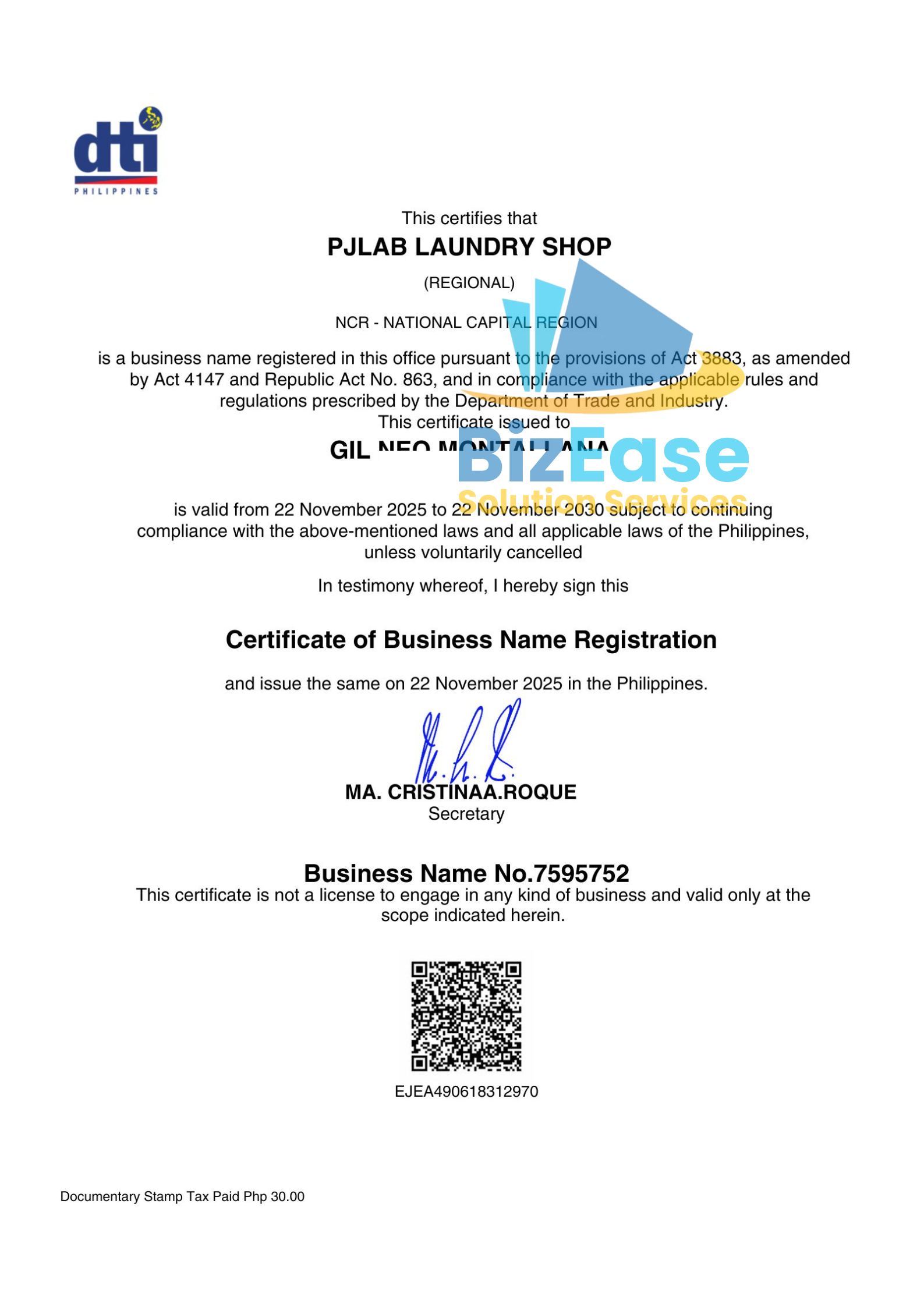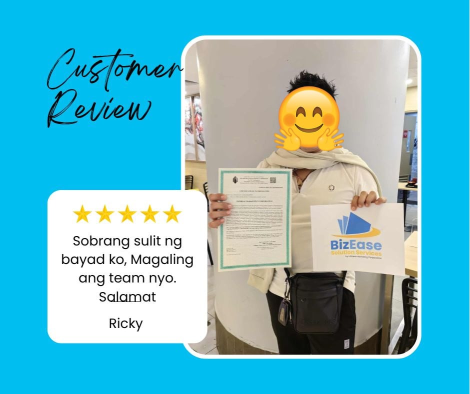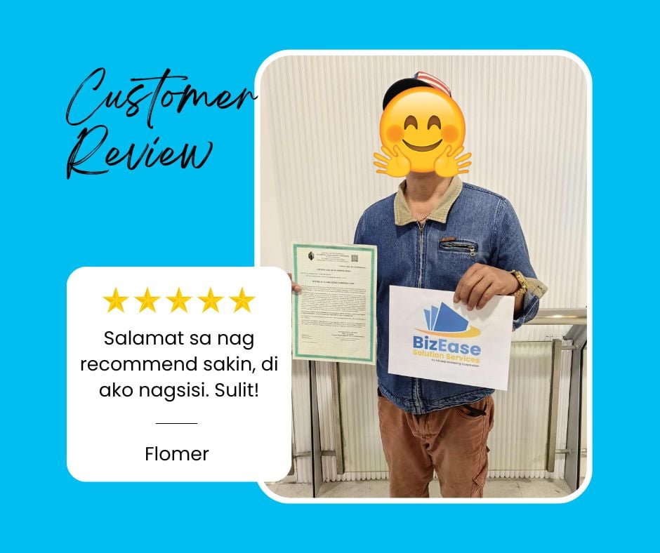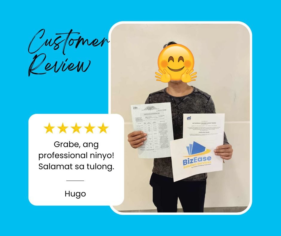 We assist with DTI/SEC, Mayor’s Permit, BIR registration, FDA approvals (if applicable), and SSS/PhilHealth/Pag‑IBIG enrollments.